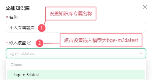设置专属知识库名称,并设置嵌入模型为bge-m3:latest。
