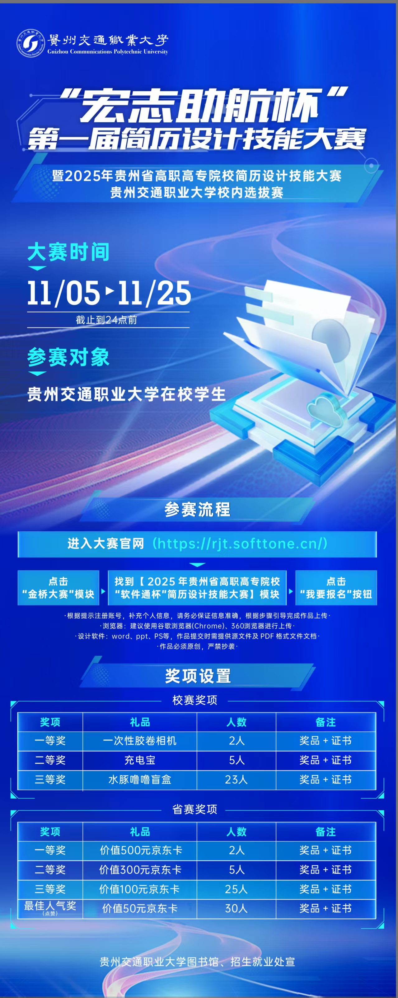图书馆关于“宏志助航杯”第一届简历设计技能大赛暨2025年贵州高职高专院校简历设计大赛贵州交通职业大学校内选拔赛的通知